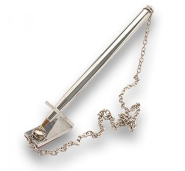 • Caneta balcão com suporte em "v"; • Caneta em alumínio tubolar polido, com suporte para repouso na diagonal; • Acabamento em alumínio polido, corrente de 50 cm e fixação por fita adesiva dupla face; • Carga BIC ou similar. Fácil aplicação.